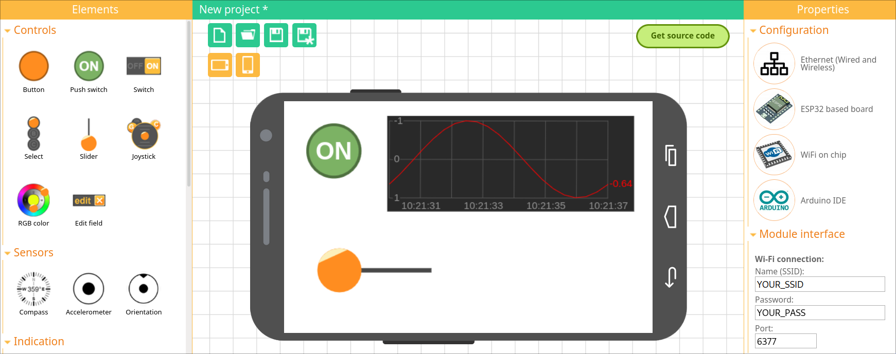 RemoteXY web editor allows users with no app or software experience to layout a simple user interface and generate an Arduino compatible skeleton for flashing to hardware.